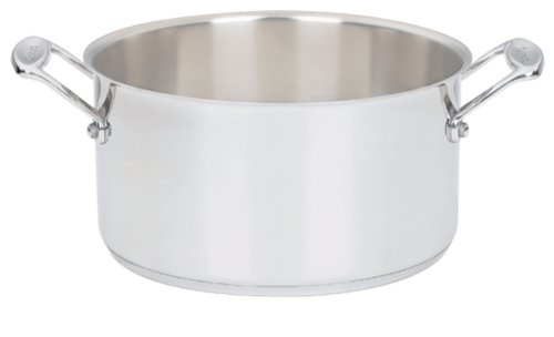 Endorsed by none other than the legendary French chef Paul Bocuse (the only restaurateur in the world to be awarded the prestigious Michelin 3 Stars for over 36 consecutive years), Cuisinart's Chef's Classic stainless cookware is high quality, yet affordable. Unlike many lines of cookware, it can go in the dishwasher for clean up, yet the aluminum core within the base provides even and efficient heating. A very handy pot, this small stockpot/extra large saucepan is extremely well-suited to making soups, cooking grains, boiling potatoes and any number of other tasks."Cuisinart Chef's Classic Stainless 6-Quart Sauce Pot with Lid" Specifications