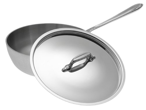 The second generation of All-Clad's Master Chef line (MC2), this cookware combines brushed aluminum with stainless-steel accents for a contemporary look. Like All-Clad's other renowned cookware collections, Master Chef provides serious and professional cooks with all the virtues that make All-Clad's worldwide reputation unsurpassed. Key to its high performance is a three-ply, bonded construction. Sandwiched between the exterior and an 18/10 stainless-steel interior is a thick aluminum core that spreads heat evenly across the bottom of the pan and all the way up its sides. The interior is highly polished so it's stick- as well as corrosion-resistant. Handles, rivets, and tight-fitting lids are all gleaming stainless steel.This classic, versatile 3-quart saucier pan, whose sides are rounded so the amount of food it can contain relative to the diameter of its bottom is increased, illustrates the Master Chef line's stylish yet practical design. Because the aluminum core extends up the sides, foods cook uniformly in the pan, even though it's 3-1/4 inches deep. And because the interior is nonreactive, tomato-based sauces and other acidic foods won't taste metallic. Its polished 18/10 stainless-steel pan and lid handles are riveted for strength and grooved on the top for comfort. The long handle (holed for hanging on a hook or peg) stays cool on the stovetop but won't be harmed by an oven's highest heat. Master Chef cookware carries a lifetime warranty against defects and should be hand washed. --Fred Brack
