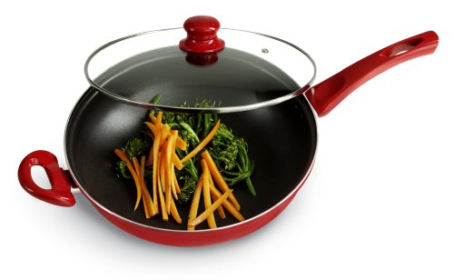 "Basic Essentials 4 Quart Aluminum Covered Chef Pan, Red" Feature