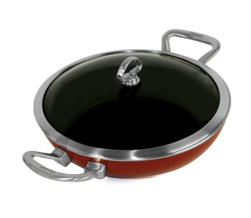 "Chantal Copper Fusion 11.5 Inch Chef's Pan with Lid, Chili Red" Overview