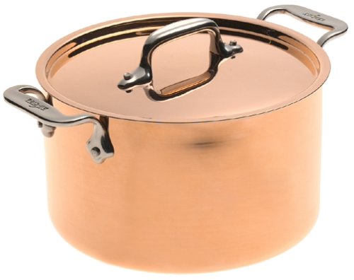 Gleaming with Old-World elegance, All-Clad's Cop-R-Chef copper-clad cookware dresses up a kitchen while providing serious and professional cooks with all the virtues that make All-Clad's worldwide reputation unsurpassed. Key to its high performance is a three-ply, bonded construction. Sandwiched between the bright copper exterior and an 18/10 stainless-steel interior lies a thick core of pure aluminum that spreads heat evenly across the bottoms of pots and pans and all the way up the sides. The interior is highly polished, so it's stick- as well as corrosion-resistant. With care, the copper exterior will remain beautiful during this cookware's lifetime warranty against defects--and beyond.This 4-quart casserole pan shows how thoroughly Cop-R-Chef marries form and function. It's ideal for baking casseroles, simmering soups and stocks, cooking pasta, and slow-cooking stew in the oven under its copper lid. Because the aluminum core extends up the sides, foods cook uniformly, even though the pan is 4-3/4 inches deep (8 inches in diameter). And because the interior is nonreactive, tomato-based sauces and other acidic foods won't taste metallic. Its polished 18/10 stainless-steel pan and lid handles are riveted for strength and grooved on the top for comfort. The loop handles stay cool on the stovetop but won't be harmed by an oven's heat. Because harsh detergents darken copper, hand washing this cookware is recommended. --Fred Brack